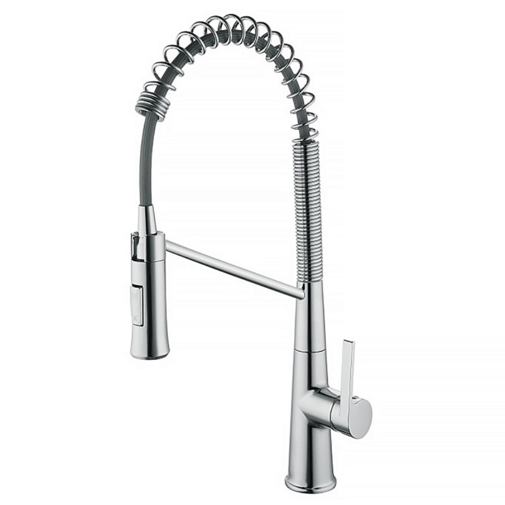 Смеситель для кухни Azario Spring имеет вытяжной излив. Изготовлен из качественной латуни и имеет защитное покрытие, что способствует устойчивости к коррозии и резким перепадам температуры. Рычажное управление, горизонтальный монтаж на одно отверстие.